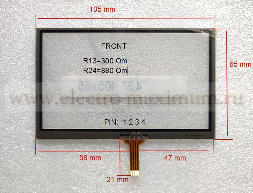 Промышленный сенсорный экран 4,3" 105x65 mm