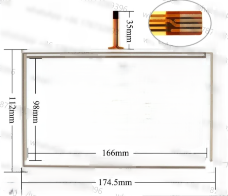 Сенсорный экран 7" имеет длину 112 мм и ширину 174.5 мм.